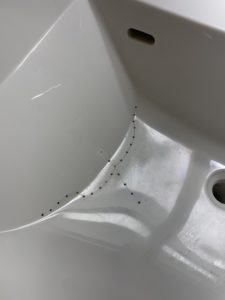 本年最後にご紹介する現場は、東京都新宿区の洗面ボウルのひび割れ補修です。